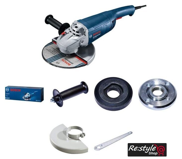 Комплект поставки | - Сетевая углошлифовальная машина- Защитный кожух- Дополнительная рукоятка- Опорный фланец- Зажимная гайка- Ключ- Картонная коробка |