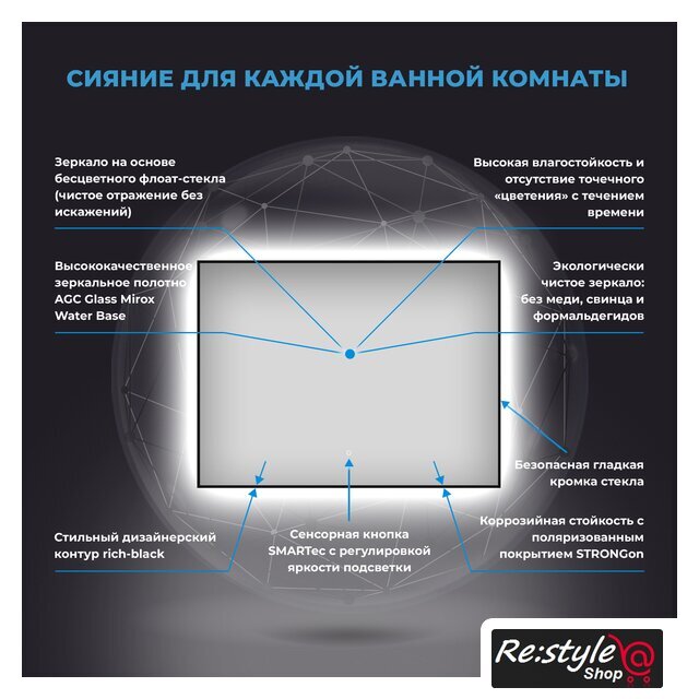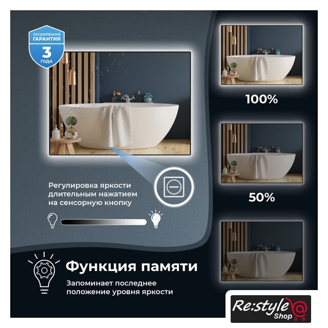 | Функциональные особенности | сенсорное управление, регулировка яркости освещения |