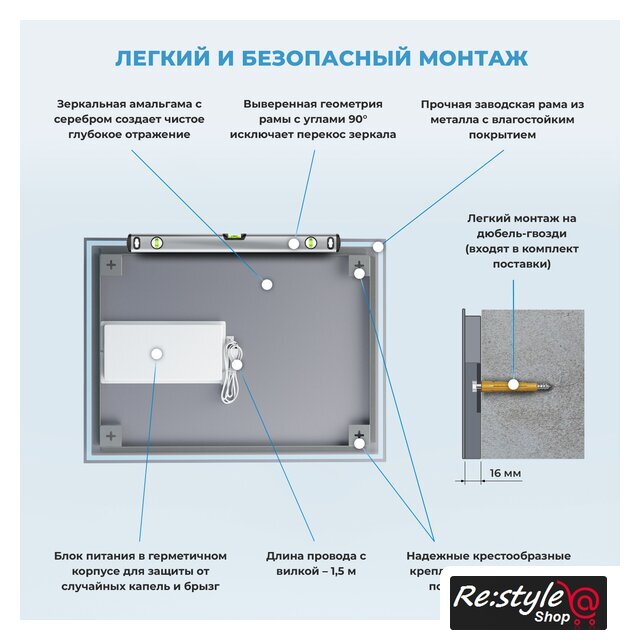 зеркало, подвесная установка