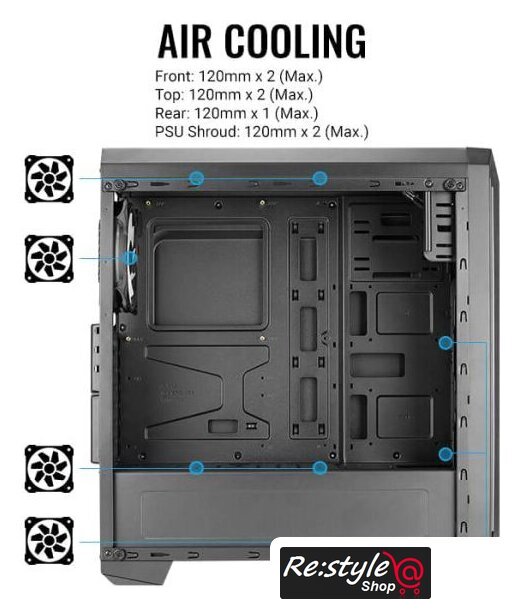 | Конфигурация вентиляторов | Передняя панель: 120 мм x 2 (Макс.)Верхняя панель: 120 мм x 2 (Макс.)Задняя панель: 120 мм x 1 (Макс.)Кожух блока питания: 120 мм x 2 (Макс.) |
