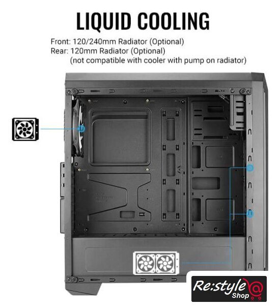 | Расположение СЖО | Передняя панель: 120/240 мм радиатор (Опционально)Задняя панель: 120 мм радиатор (Опционально) (не совместимо с кулером, оснащенным насосом на радиаторе) |