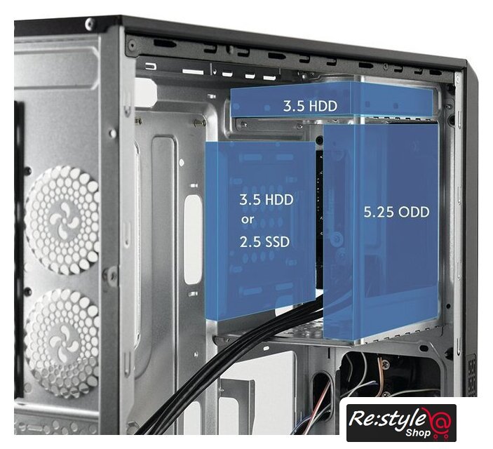 | Конфигурация вентиляторов | сбоку: 1x120mmсверху: 1x120mmснизу: 1x120mmсзади: 2x60mm |
