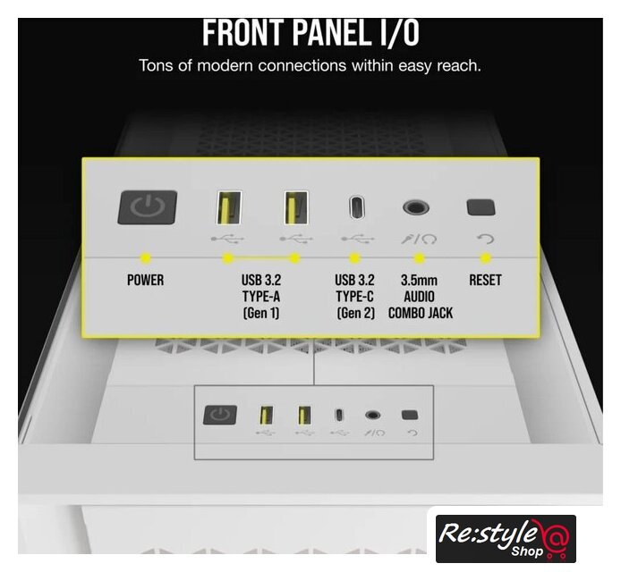 | Конфигурация вентиляторов | спереди: 3x 120 мм / 2x 140 ммсверху: 3x 120 мм / 2x 140 ммсверху кожуха БП: 2x 120 ммсбоку: 3x 120 ммсзади: 1x 120 ммВ комплекте: спереди: 3x AF120 RGB ELITE + контроллер iCUE Lighting Node PRO |
