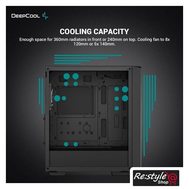 | Конфигурация вентиляторов | Спереди: 3×120 / 3×140 ммСверху: 2×120 / 2×140 ммСзади: 1×120 ммСнизу: 2x120 ммВ комплекте:Спереди: 3×120 ммСзади: 1×120 мм |