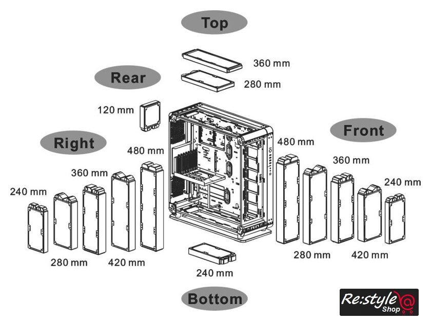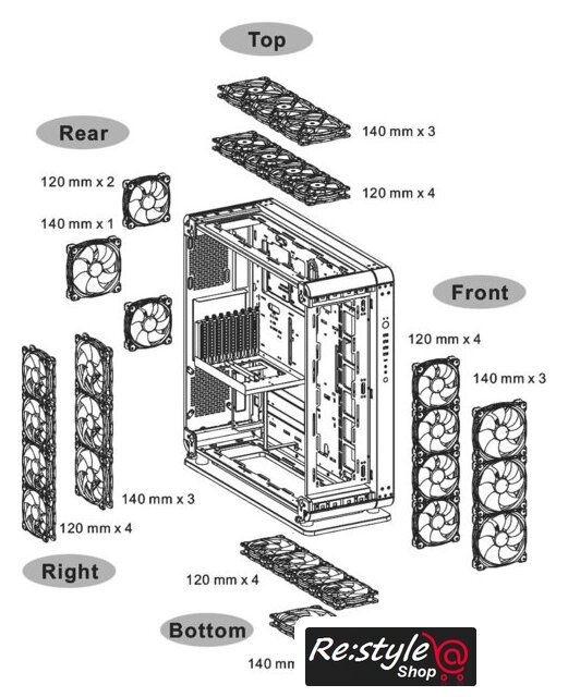 | Количество мест для вентиляторов | 14 (120мм или 10 шт 140мм) |