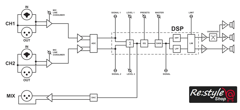 | Симметричные (балансные) входы | 2 (XLR, 1/4" TRS) |