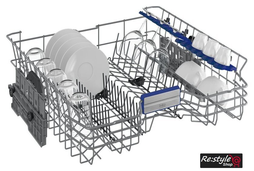 Особенности верхней корзины | регулировка положения по высоте, держатели для бокалов, складывающиеся держатели |