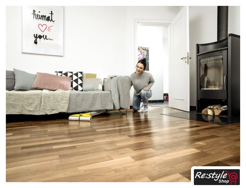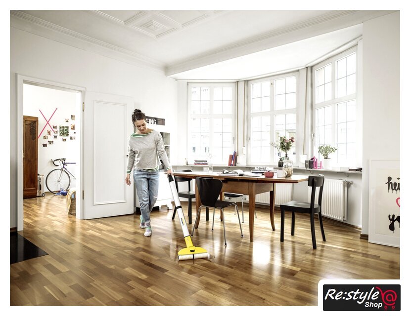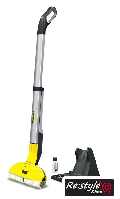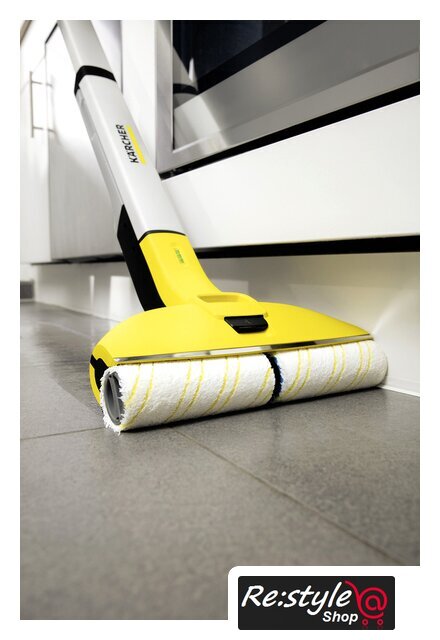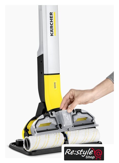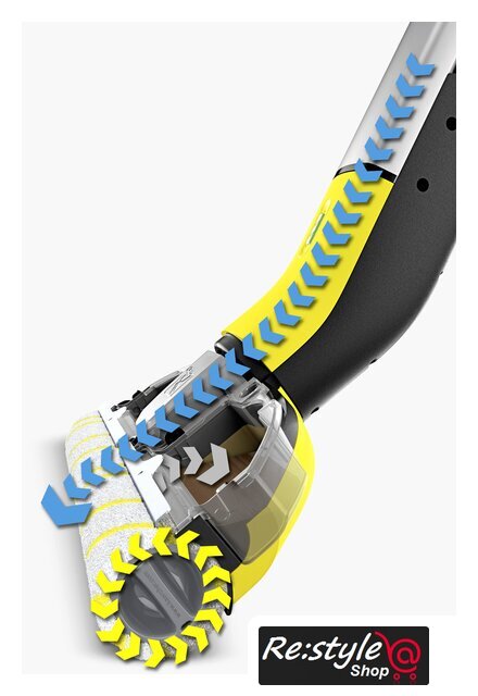 Комплектация | Система 2 резервуаров2 универсальные роликовые щетки (желтые)Чистящее средство, Универсальное средство для уборки полов RM 536, 30 млПарковочная станция с местом для хранения роликовЗарядное устройство |