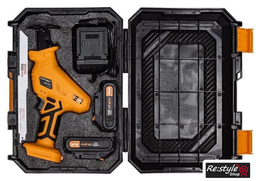 Комплектация | • пила• пильное полотно• аккумулятор (2 шт)• зарядное устройство• кейс• руководство по эксплуатации• гарантийный талон |