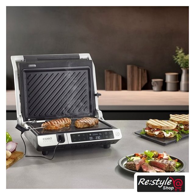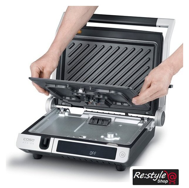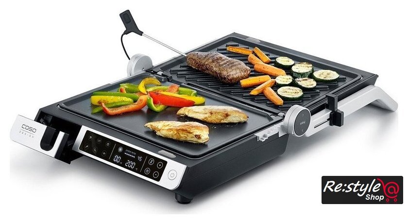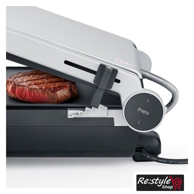 | Комплектация | выносной термометр-щуп; съёмные гладкая и рифленая пластины; лоток для сбора жира; инструкция |