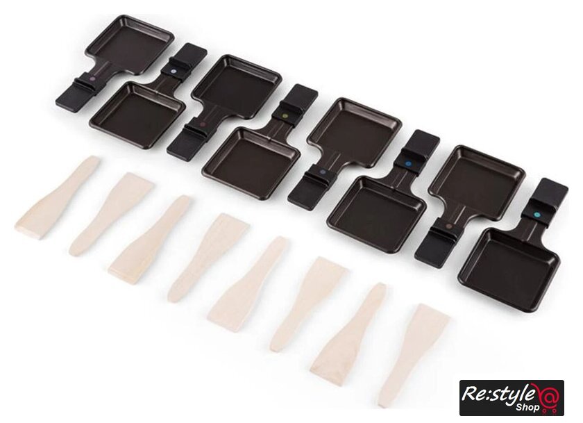 | Комплектация | раклетница1 алюминиевая пластина1 гранитная плита8 сковородок для раклета8 деревянных лопаточек |