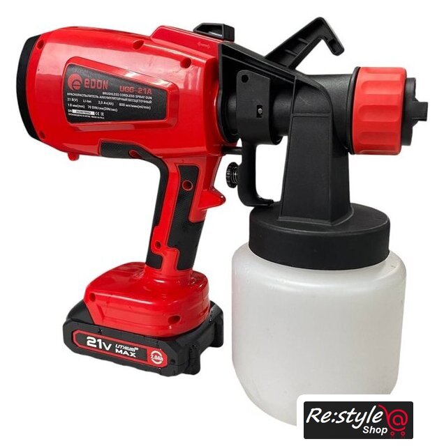 Комплект поставки | - Краскораспылитель;- Аккумуляторная батарея - 2шт;- Зарядное устройство;- Воронка для определения густоты краски;- Руководство по эксплуатации;- Упаковка (кейс пластиковый). |