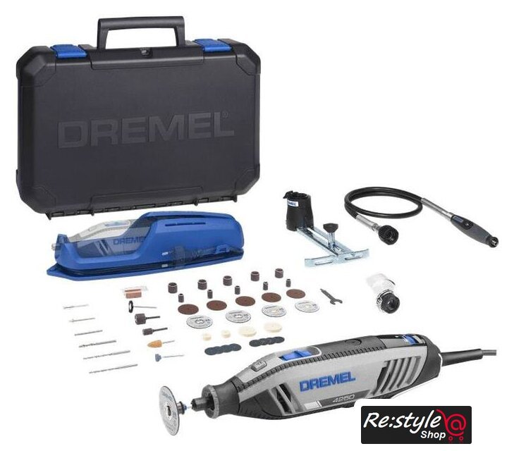 | Комплектация | 45 высококачественных насадок1 фрезерный циркуль Dremel 6781 гибкий вал Dremel 2251 защитный кожух Dremel 5501 настенный держатель1 пластиковый кейс |