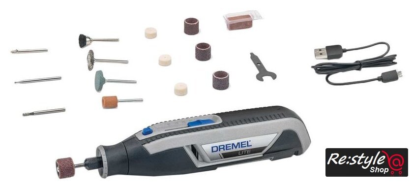 | Комплектация | - Dremel Lite- 15 фирменных насадок- Micro - USB зарядное устройство- Инструкция по эксплуатации- Брошюра – быстрый старт |