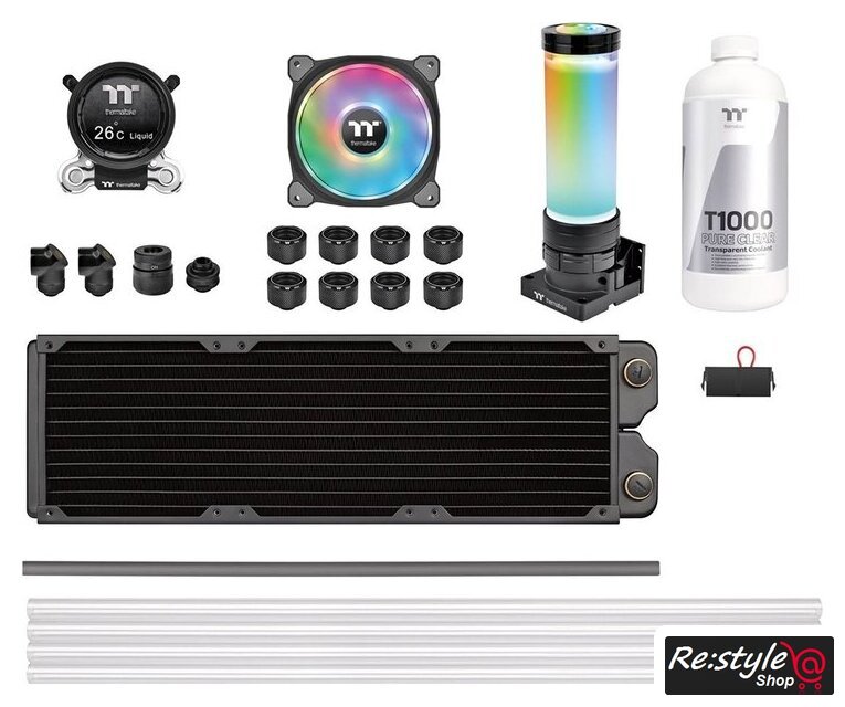 | Комплектация | - радиатор Pacific CLM360 Radiator CL-W237-CU00BL-A- водоблок Pacific MX2 Ultra CPU Waterblock CL-W332-CU00SW-A- резервуар с помпой Pacific PR32-D5 Plus CL-W280-PL00SW-A- набор из трех вентиляторов Riing Duo 12 RGB Radiator Fan TT Premium Edition CL-F073-PL12SW-A- фитинги Pacific C-PRO G1/4 PETG Tube 16mm OD Compression Black CL-W214-CU00BL-A, Pacific G1/4 90 Degree Adapter Black CL-W052-CU00BL-A, Pacific G1/4 Male to Male 10mm Extender Black CL-W042-CU00BL-A- хладагент Thermaltake T1000 Coolant Pure Clear CL-W245-OS00TR-A- трубки V-Tubler PETG Tube 500 CL-W065-PL16TR-A- универсальный бэкплейт для процессоров Intel и AMD и крепежный набор- инструмент для перемычки блока питания ATX- термопаста- силиконовая вставка- документация |