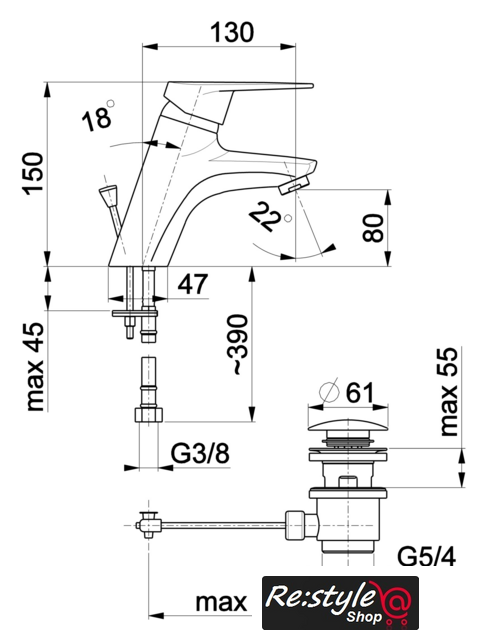 | Длина (вылет) излива | 130 мм |