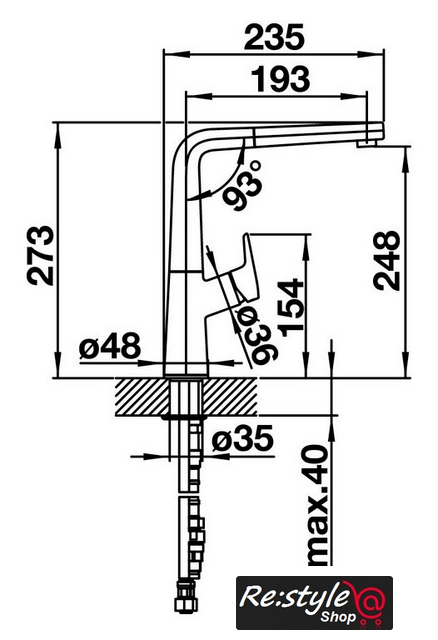 Длина (вылет) излива | 193 мм |
