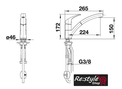 | Длина (вылет) излива | 224 мм |