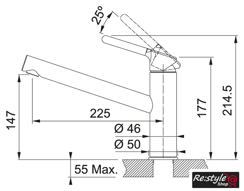 | Длина (вылет) излива | 225 мм |