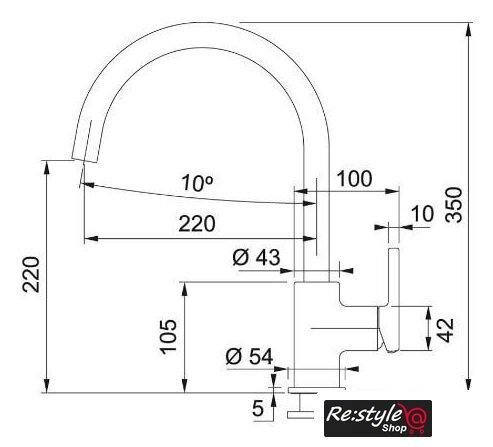 | Длина (вылет) излива | 220 мм |