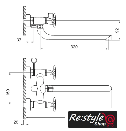 | Длина (вылет) излива | 320 мм |