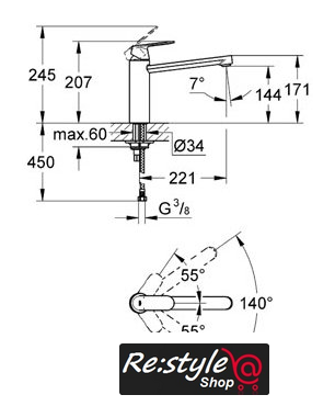 Поворотный излив | 140 ° |