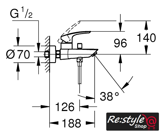 Длина (вылет) излива | 188 мм |