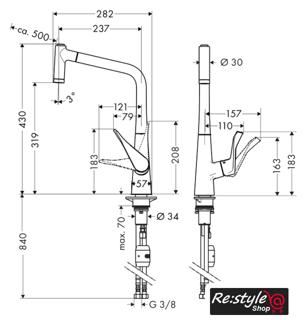 | Высота излива | 319 мм |