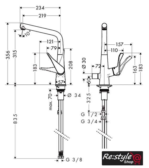 | Высота излива | 315 мм |