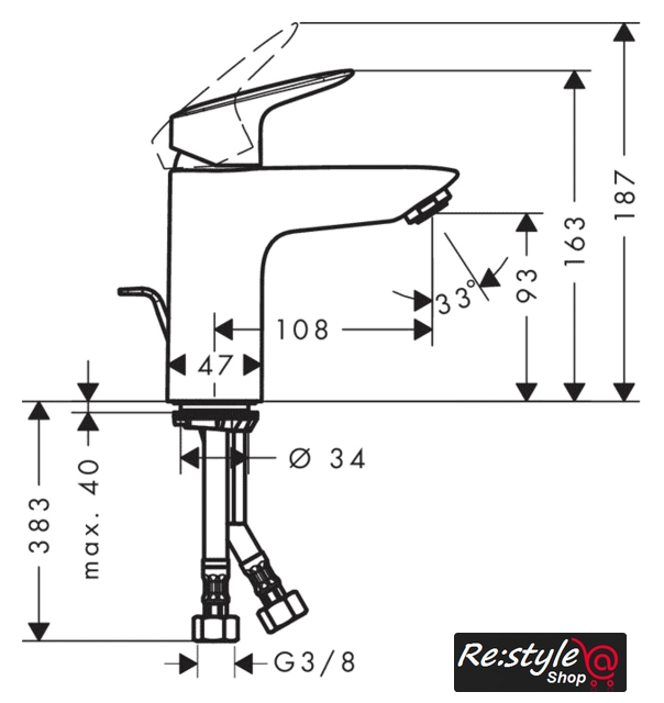 | Длина (вылет) излива | 108 мм |
