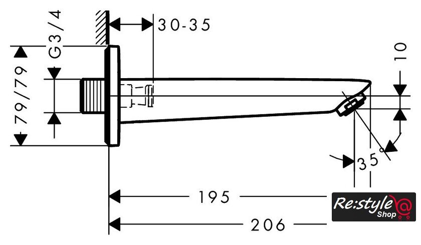 | Длина (вылет) излива | 195 мм |