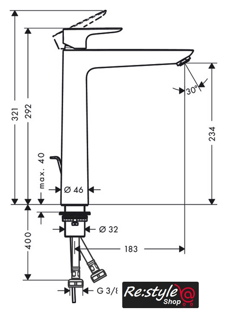 | Длина (вылет) излива | 183 мм |