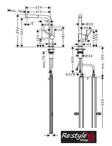| Высота излива | 265 мм |