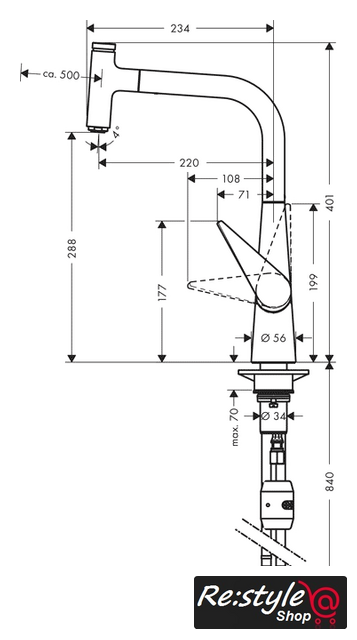 | Поворотный излив | 150 ° |