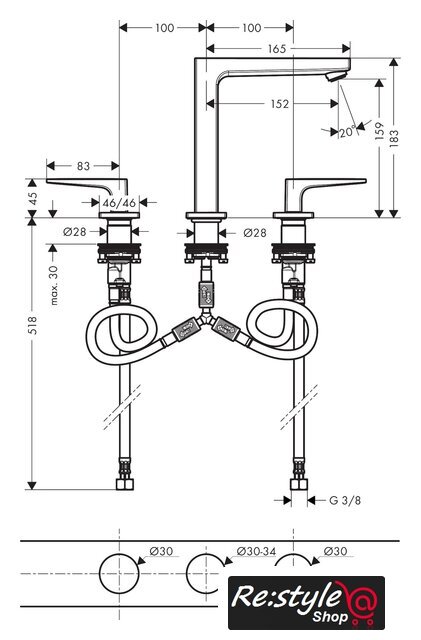 | Ширина | 46 мм (смесителя) |