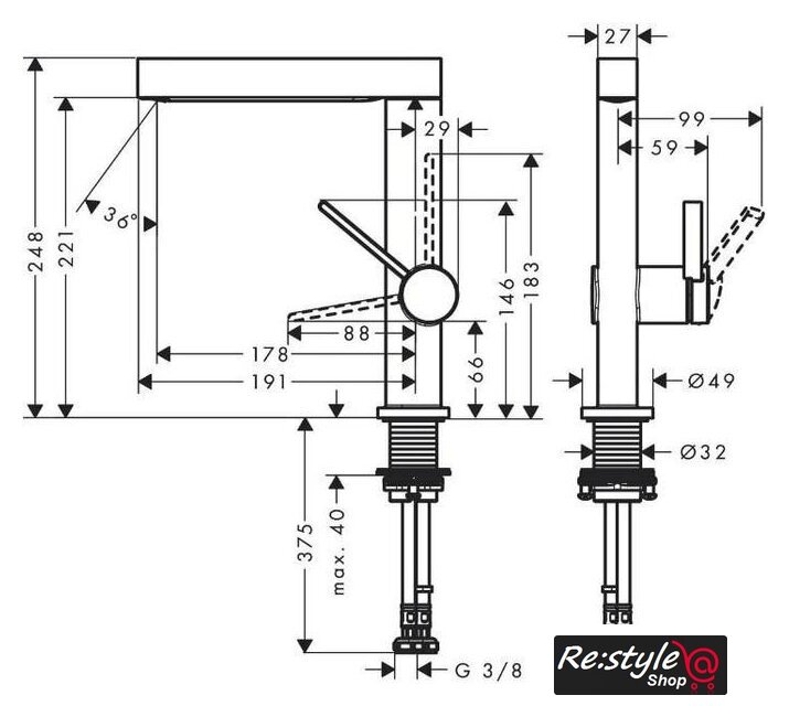 | Длина (вылет) излива | 178 мм |