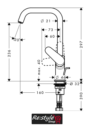 | Длина (вылет) излива | 160 мм |