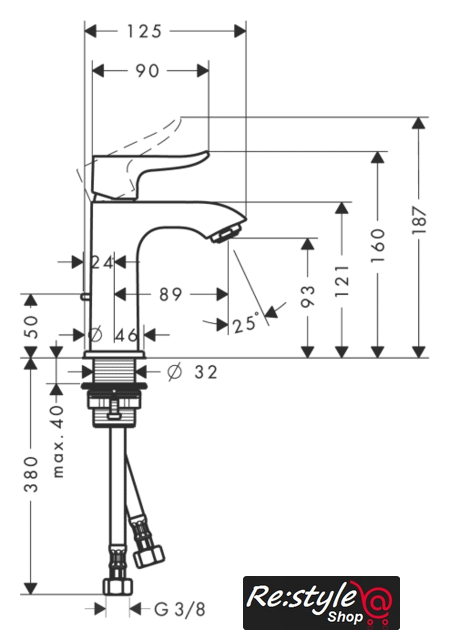 | Длина (вылет) излива | 89 мм |