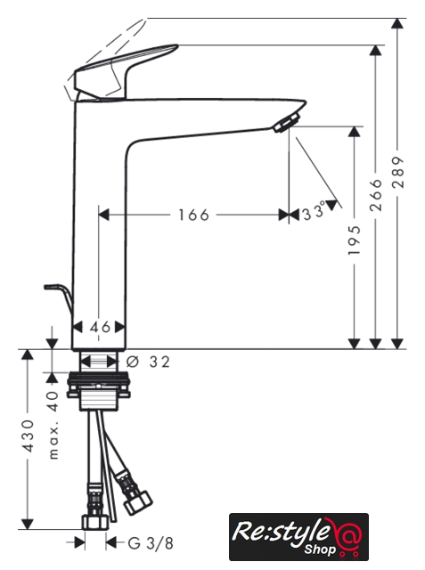 | Длина (вылет) излива | 166 мм |
