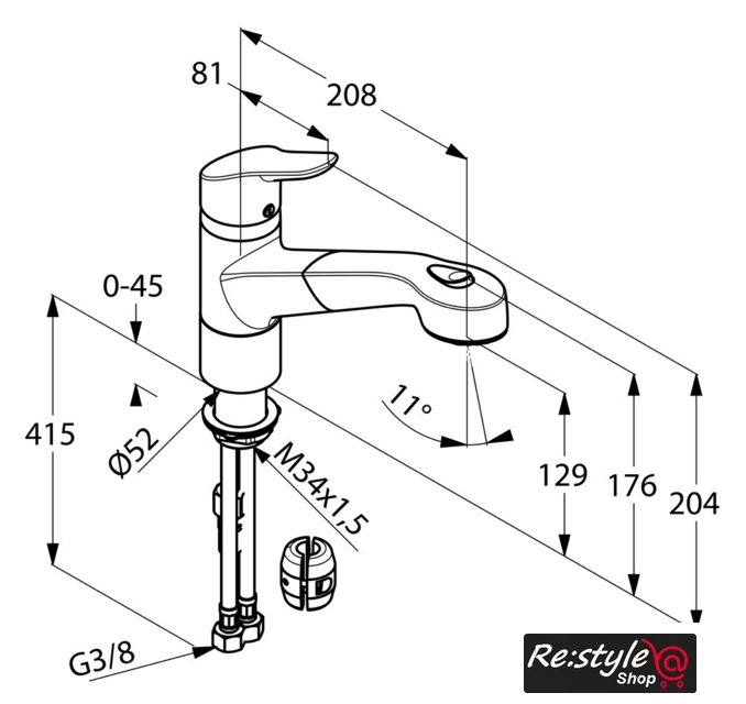 | Длина (вылет) излива | 208 мм |