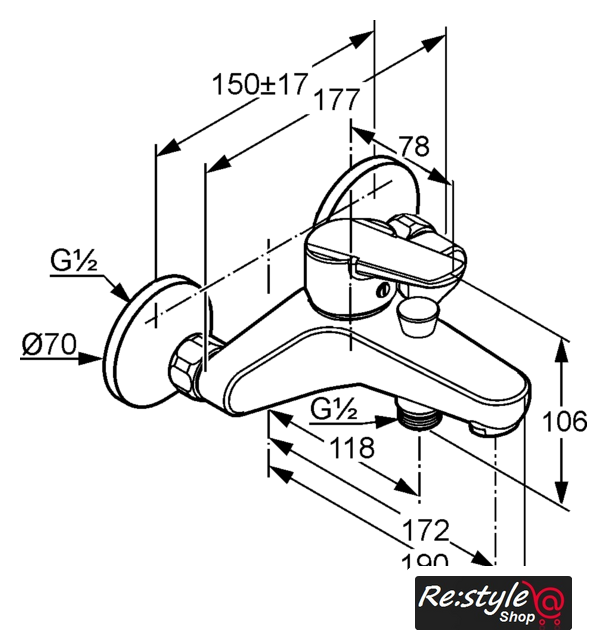 | Длина (вылет) излива | 172 мм |