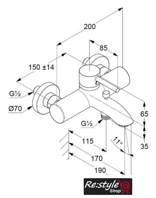 | Длина (вылет) излива | 170 мм |
