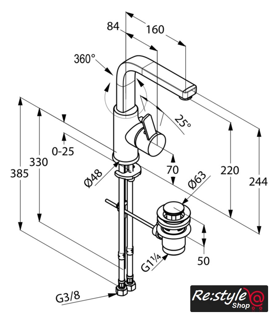 | Поворотный излив | 360 ° |