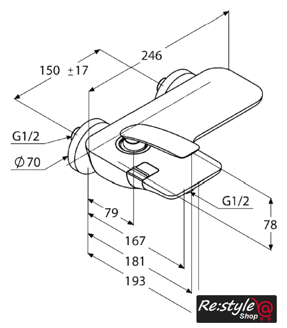 | Длина (вылет) излива | 181 мм |
