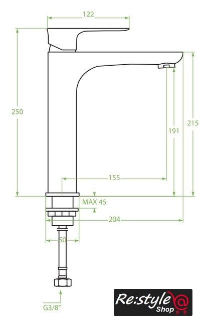 | Длина (вылет) излива | 155 мм |