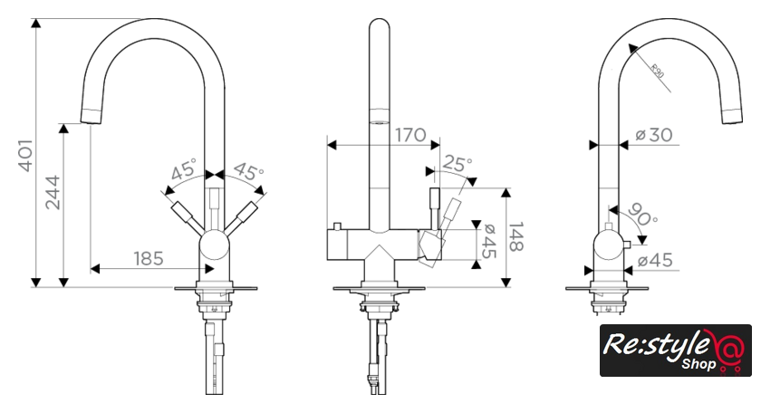| Поворотный излив | 360 ° |