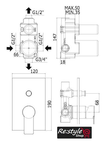однорычажный смеситель для душа, монтаж скрытый