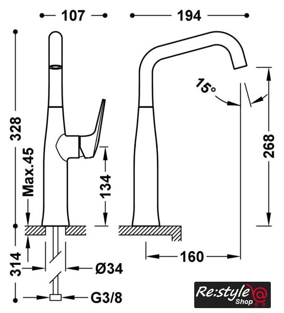 | Поворотный излив | 360 ° |