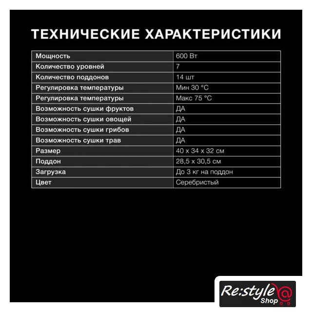 | Комплектация | 7 металлических поддонов7 поддонов для пастилы |