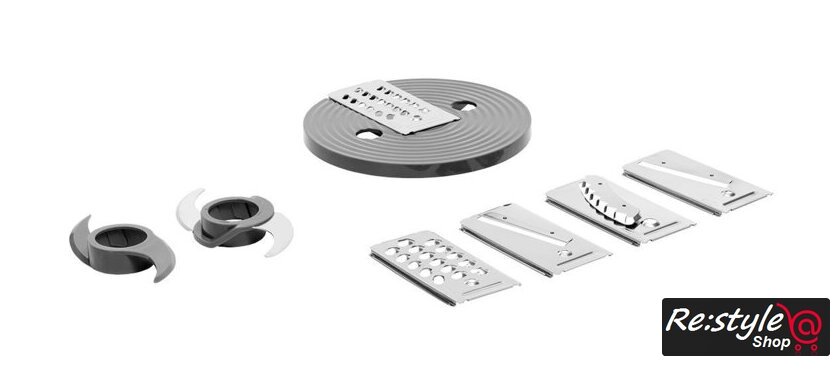 Полная комплектация | Блендер 1,8лТерка с 5-ю насадками (терка, крупные ломтики, мелкие ломтики, картошка фри)Нож-измельчительВенчикКрюк для замеса тестаСоковыжималка для цитрусовМельничкаЧаша 3,5л с толкателем |